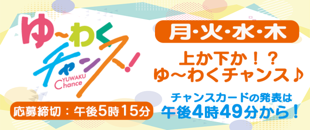 【月・火・水・木】曜日は「ゆ~わくチャンス」をお届けします!応募は午後5時15分まで!