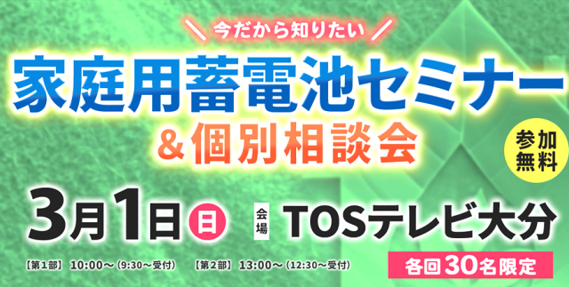 今だから知りたい!家庭用蓄電池活用セミナー&個別相談会